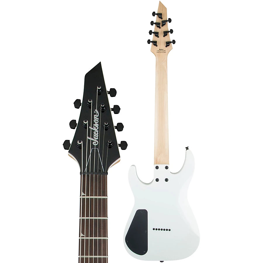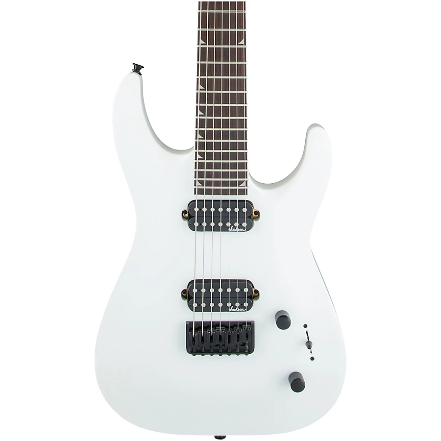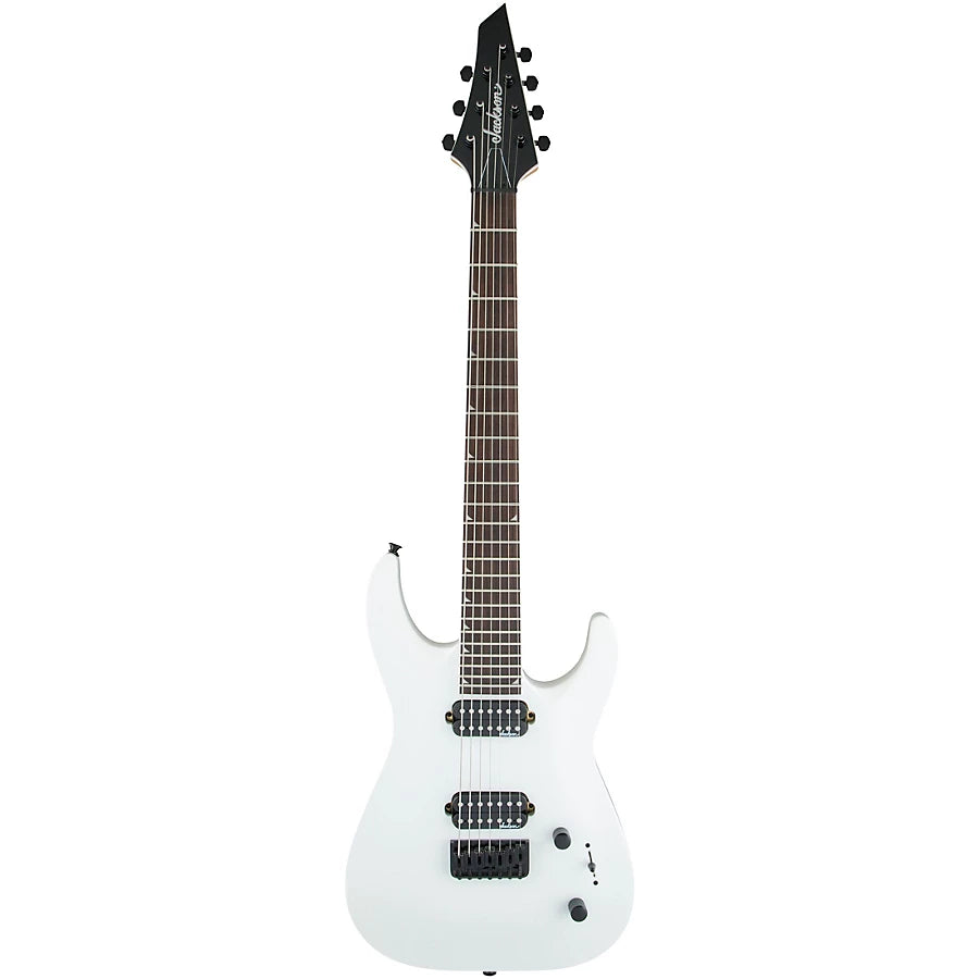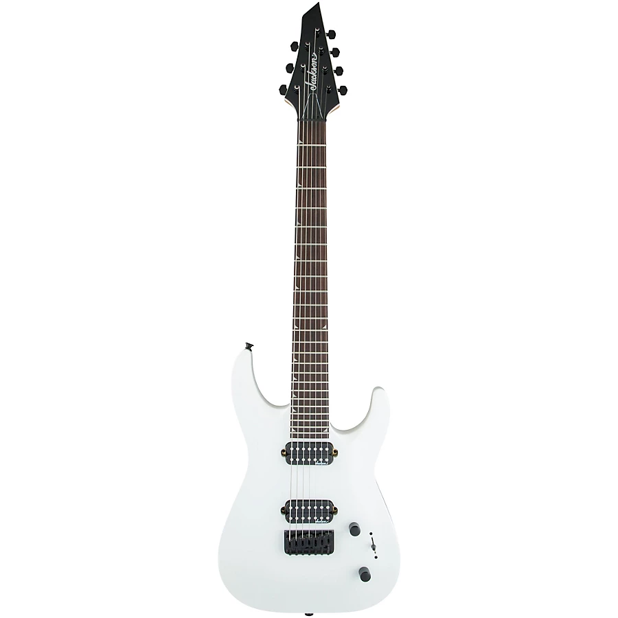 Powered by dual direct-mount Jackson high-output humbucking pickups, the JS32-7 DKA HT is also equipped with a three-way blade switch, single volume and tone controls, compensated string-through-body fixed Jackson HT7 bridge, sealed die-cast tuners and Jackson's 3x4 (3 over, 4 under) AT-1 headstock.